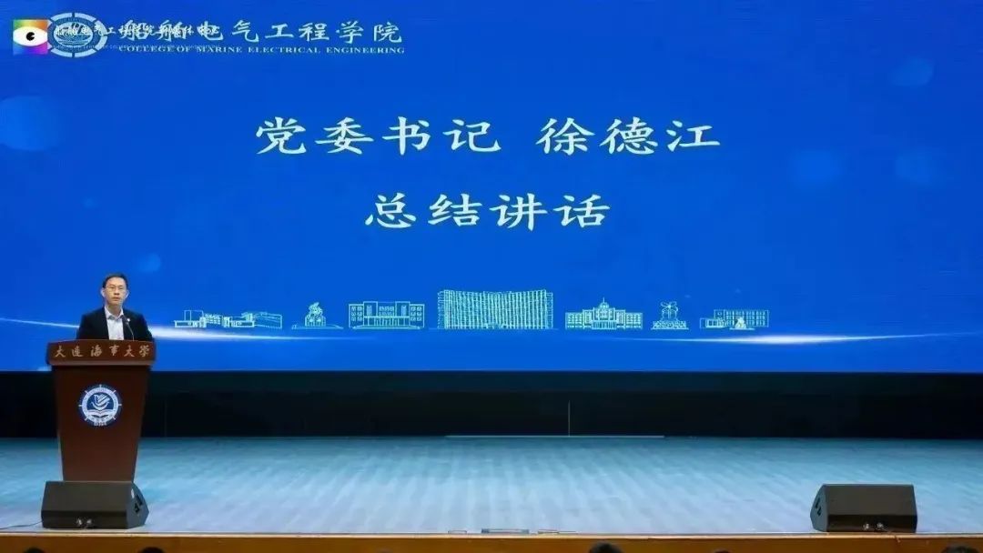 大会最后,学院党委书记徐德江作总结讲话,他首先强调了学风建设的重要性,良好的学风可以带动整个学院的学习积极性,发挥学生们的主观能动性,让学生们昂扬向上,其次徐书记分析了目前学风建设存在的一些问题及原因并解答了如何建设好学风,怎样提高学生们主动学习意识,提出了加强学生管理、勤于学习、以帮助学三点要求,希望同学们能够做到眼中有光、肩上有责、手中有活、心中有梦,平稳度过大一学年的学习生活。