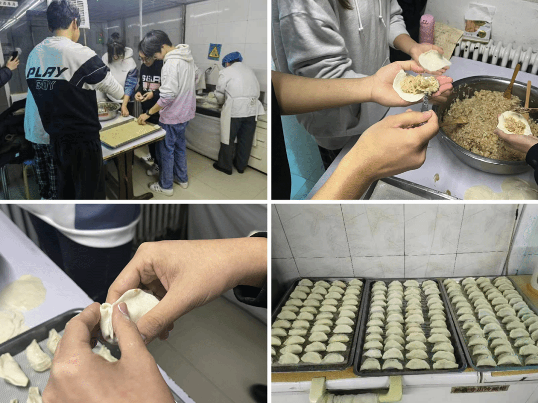 交谈打扫过后同学们帮忙包起饺子。大家围在一起,其乐洋洋地包着饺子,有说有笑,整个活动简单又温馨,既让老人们有参与感和满足感,也让大家不知不觉地融入到一起。